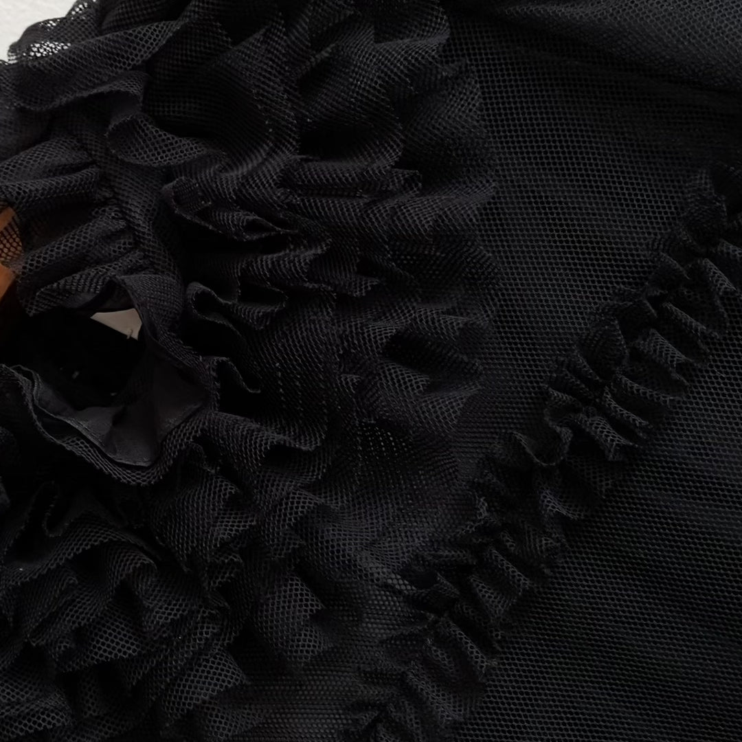 Black Cotton Tulle Ruffle Hem Shift Dress