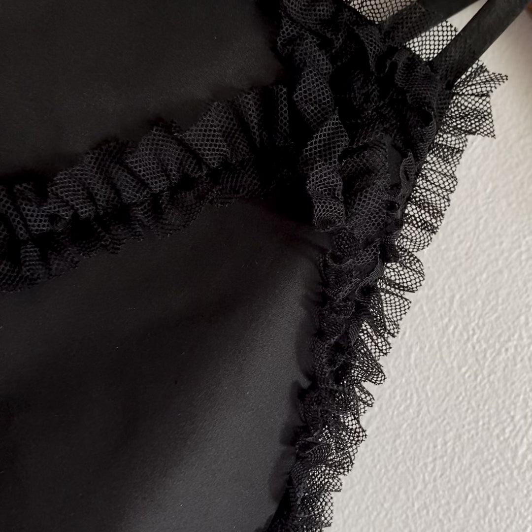 There’s nothing we love more than a matching set. This crop top is made in our iconic polished cotton poplin and embellished with a ruffled lattice of tulle. A button back closure and adjustable bow finishes the back. Crafted in double twisted Supima cotton poplin.