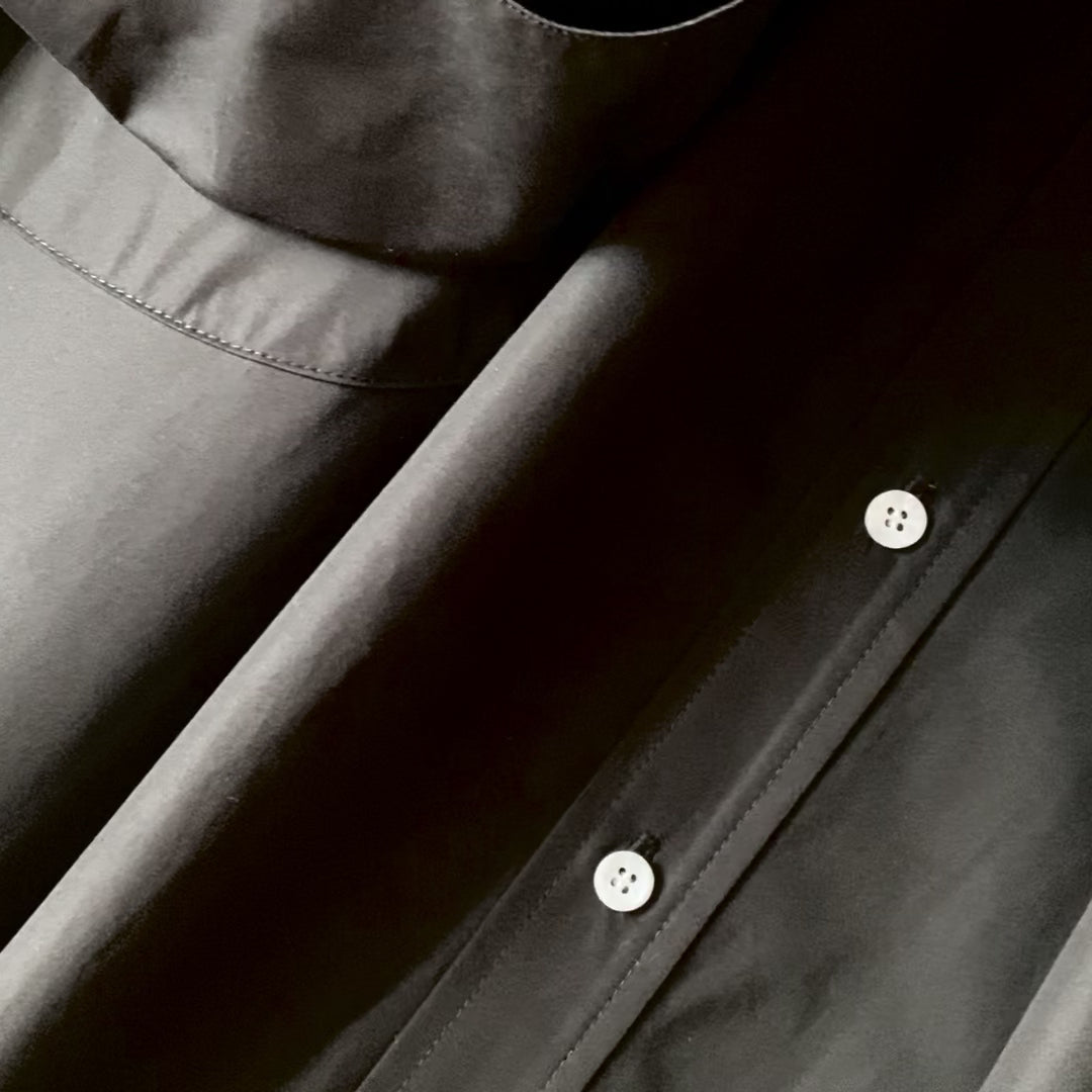 Black Poplin Rose Pocket Trapeze Shirt Dress