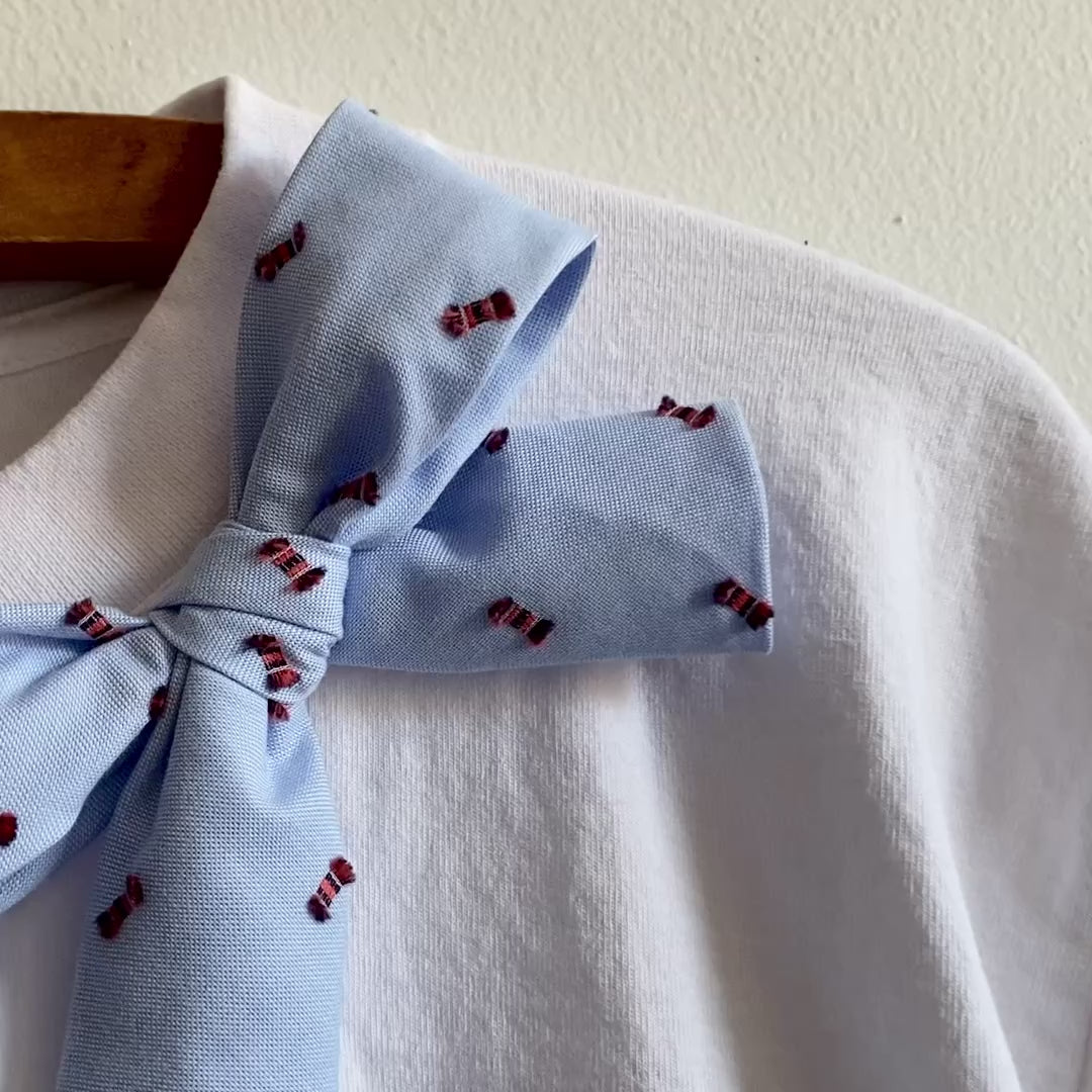 This limited edition tee is crafted from organic white cotton jersey and cut with an easy, oversized silhouette. A single bow, made from deadstock cotton oxford with orange and black clip embroidery, is hand-tied and placed asymmetrically at the neckline. The bow is cut from the same fabric used in the style worn by Charlotte on And Just Like That.