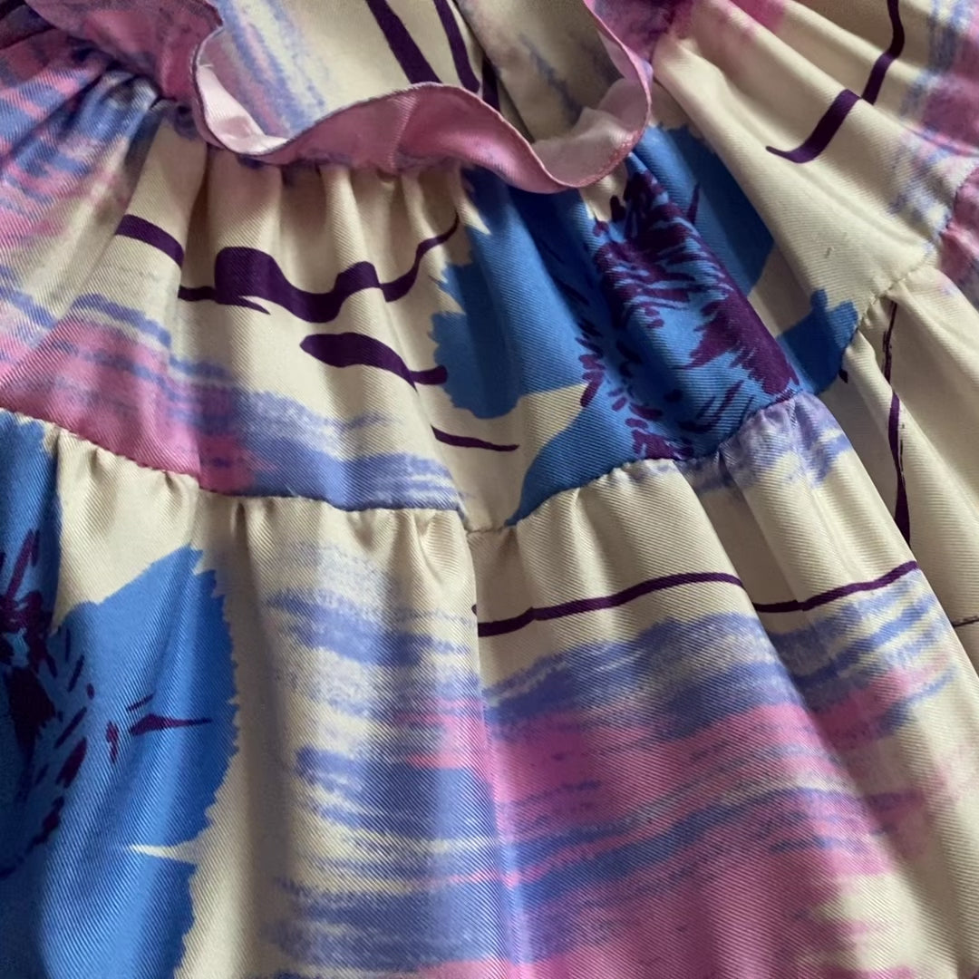 Our dramatic swing top has a tiered ruffle at the neckline that creates a capelet effect. The hem is full of movement and drama. The floral print was painted by an artist in Antwerp and is exclusively ours. Crafted in French silk twill.