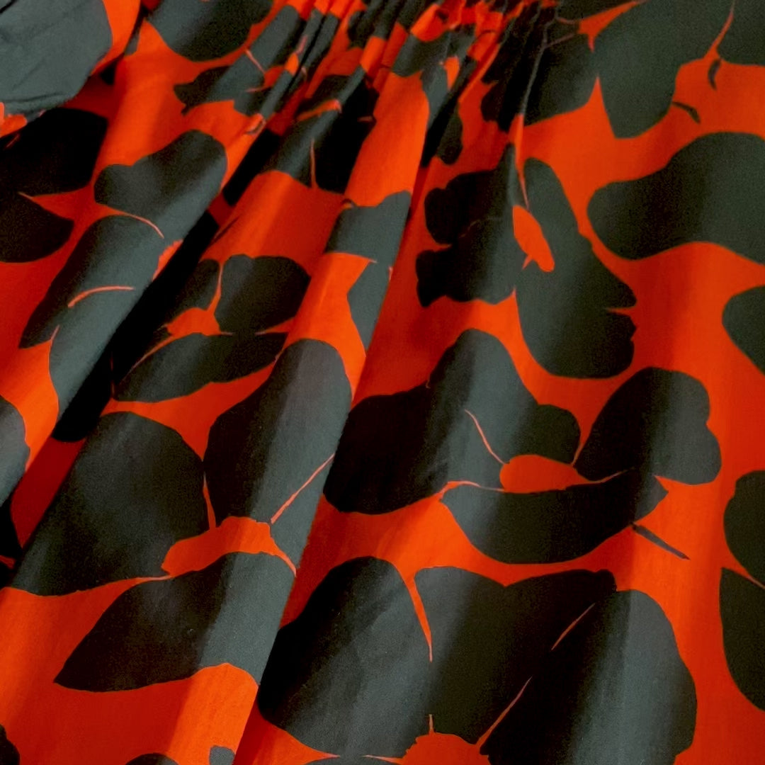 A hand tied bow is applied to the rolled collar of this garment and is steamed just so. 14 pintucks extend from the neckline and release to give additional ease to this already relaxed shape. A tie is included as an option to define the waist. This midi-dress is a variation on our best-selling Bow Tunic. Crafted in an archival French poppy print cotton poplin, this dress is thoroughly optimistic and essentially one of a kind. We suggest to style it with one (or two) of our matching bow hair clips.