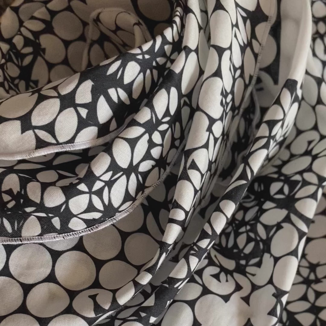 The long point collar of this blouse is finished with a double row of stitching. Roses are added to each sleeve with circular cut ruffles. We love that this print, sourced in France, references punchinello ribbon (made the leftovers from sequin production). Crafted in printed cotton poplin from one of the most storied haute couture mills in Lyon, France.