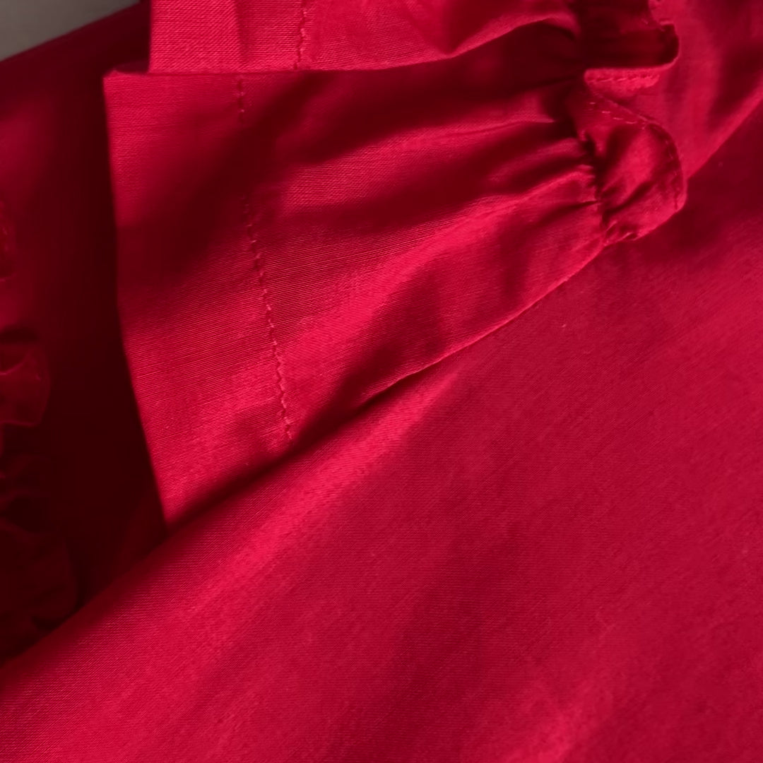 Red & Silver Broderie Anglaise Peplum Shirt