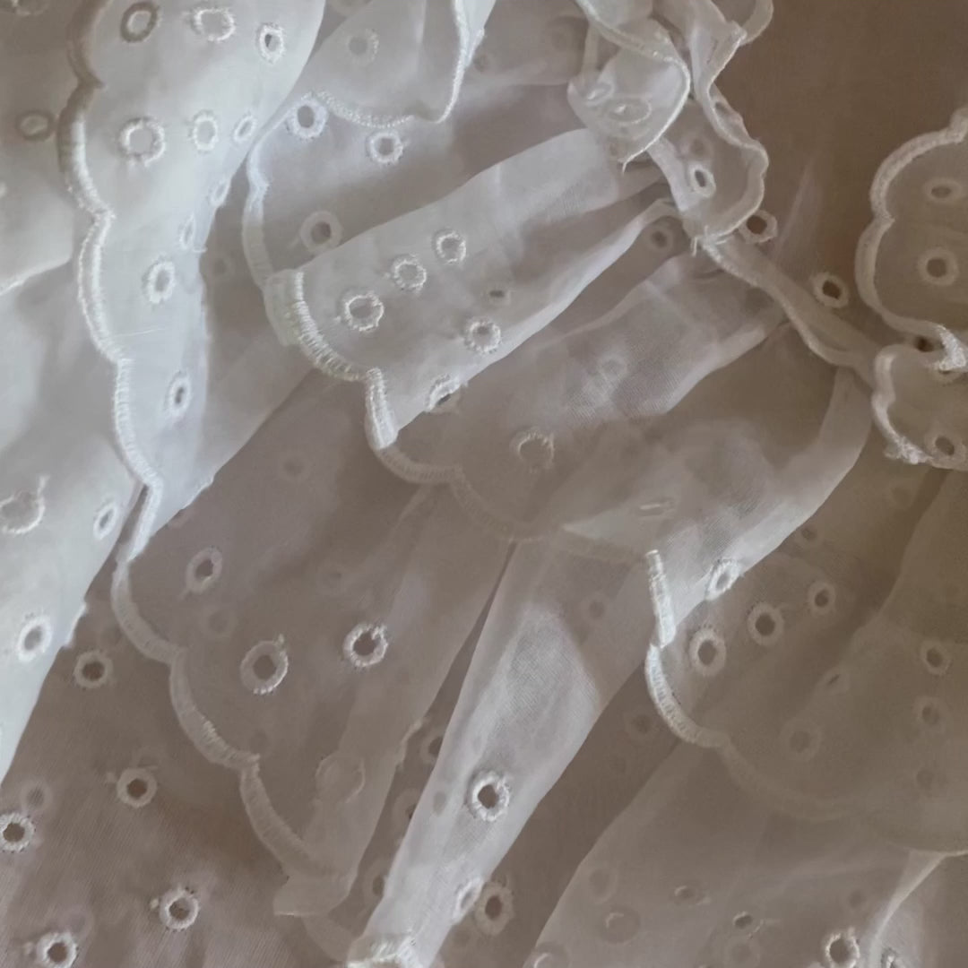 White San Gallo Organdy Ruffle Top