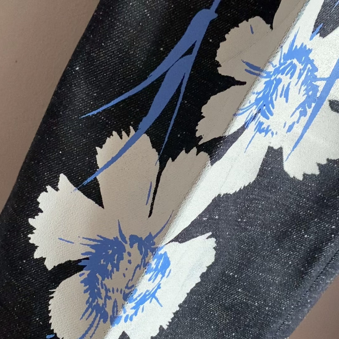 Denim Silk Screen Floral Pant